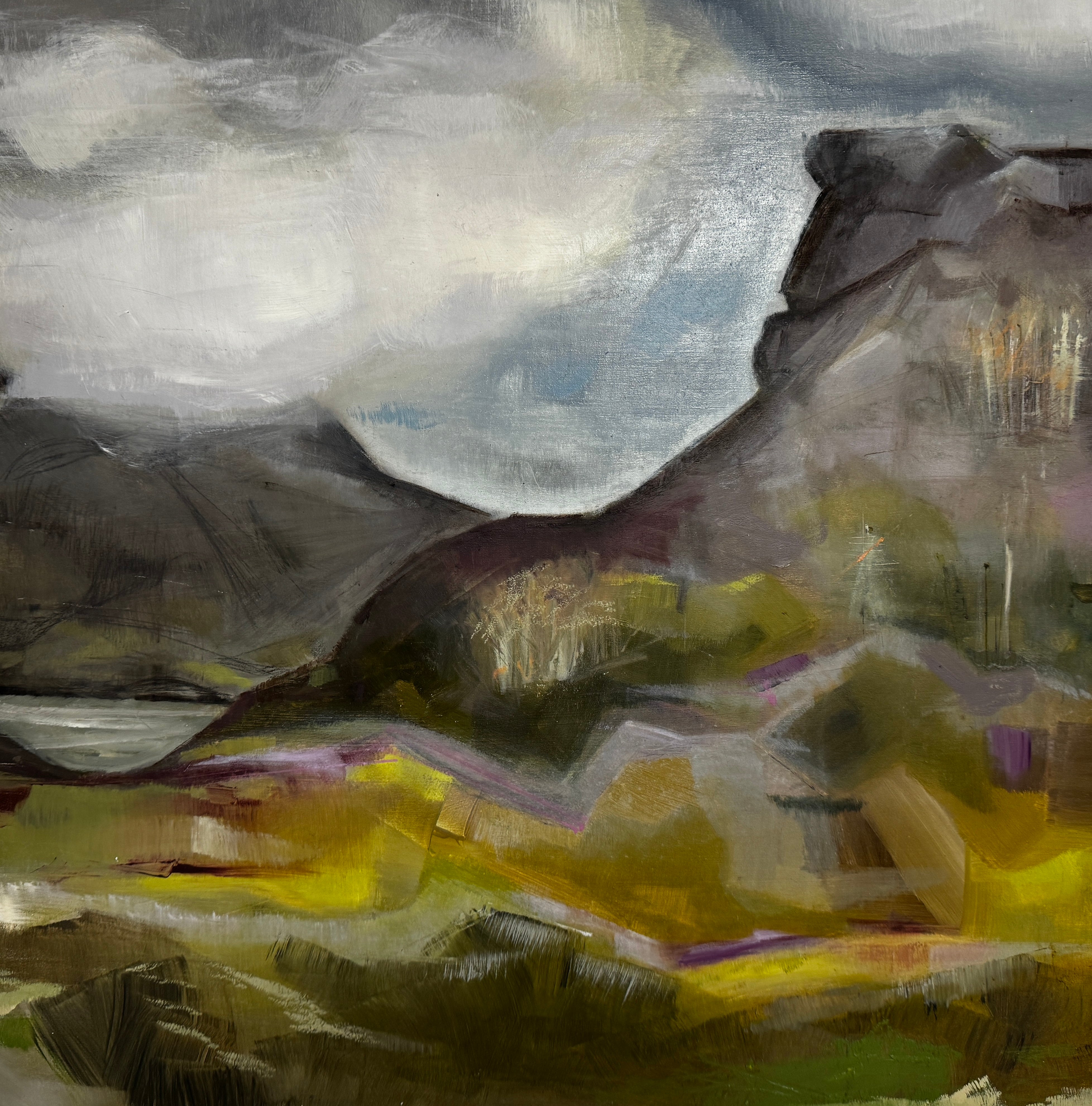 Anna Brice Cockland is a painter whose work moves between abstraction and figuration, exploring memory, landscape, and perception through intuitive mark-making. Using oil, pigment, and collage, she creates layered compositions that balance energy and stillness. Her work is held in notable public and private collections, and she now paints from her studio in Naast, Scotland, where the surrounding land continues to shape her evolving practice.