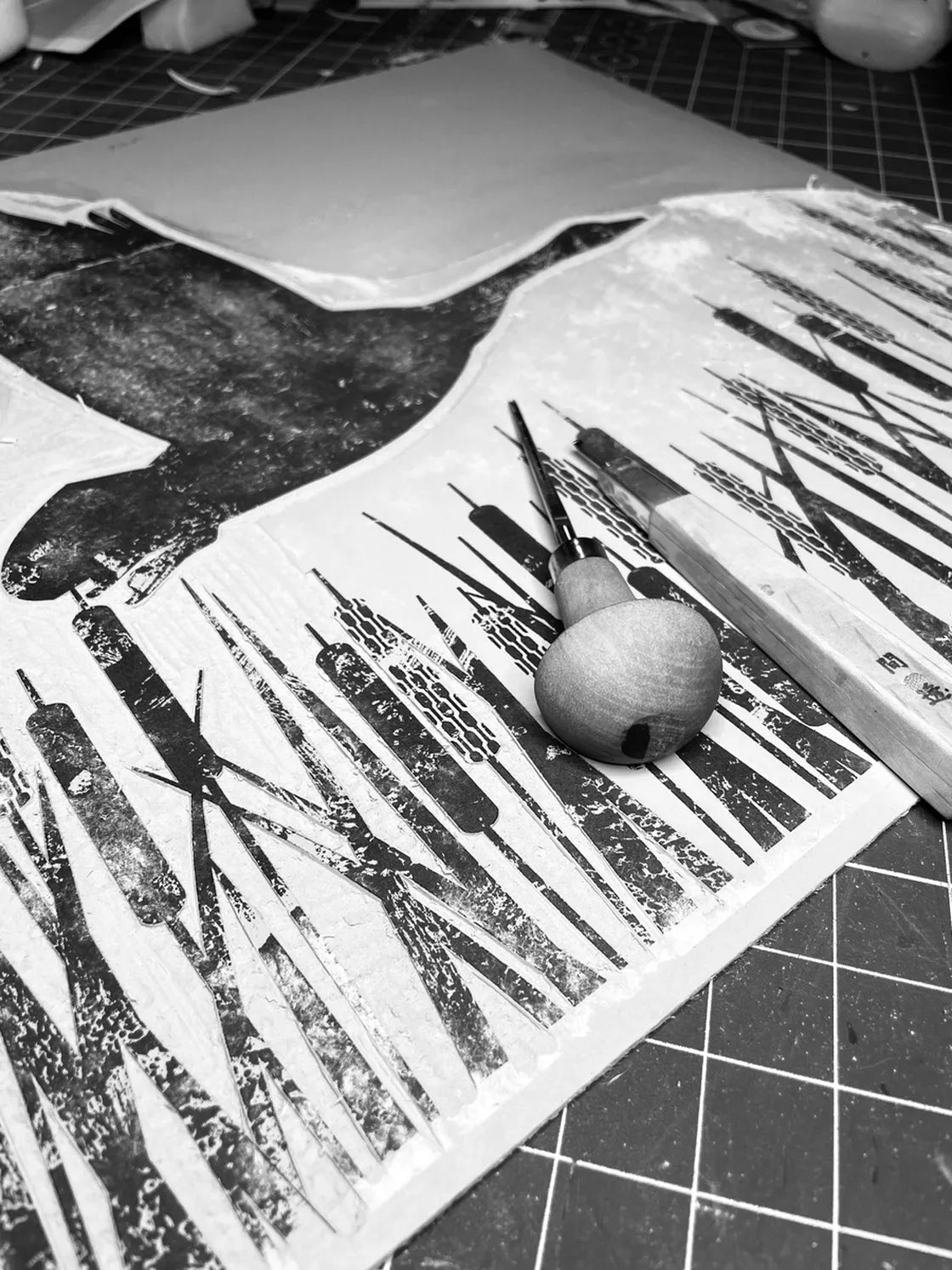 Each print is hand-inked and pressed with oil-based inks on 100% cotton paper, producing gentle variations that make every piece unique. From an edition of 50, each is signed, dated, and numbered by the artist.