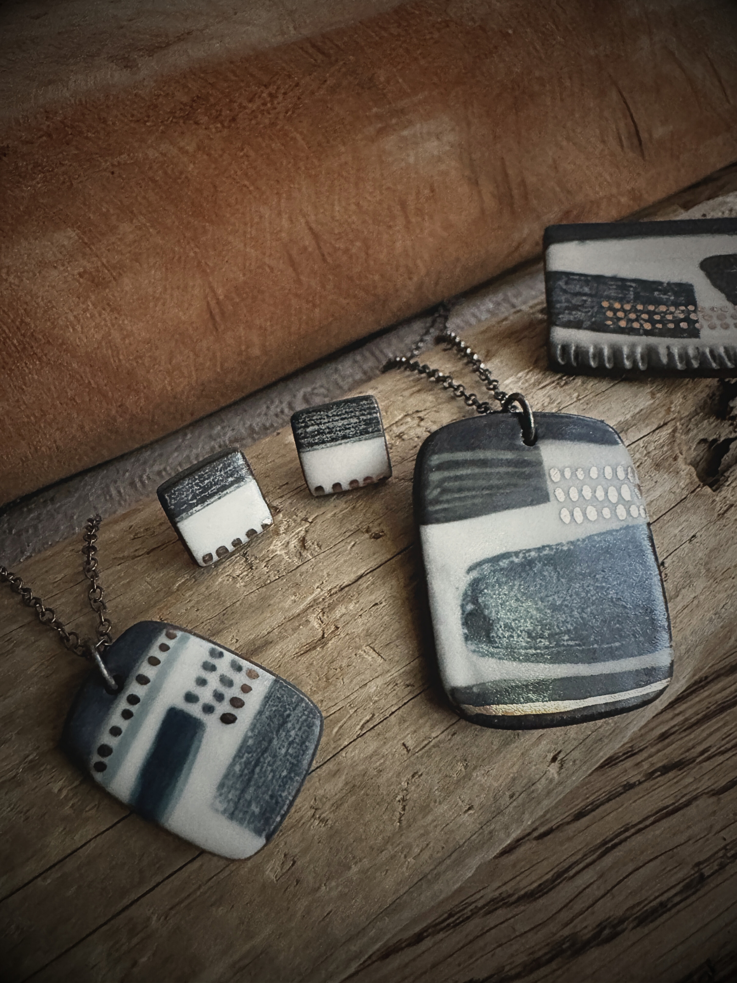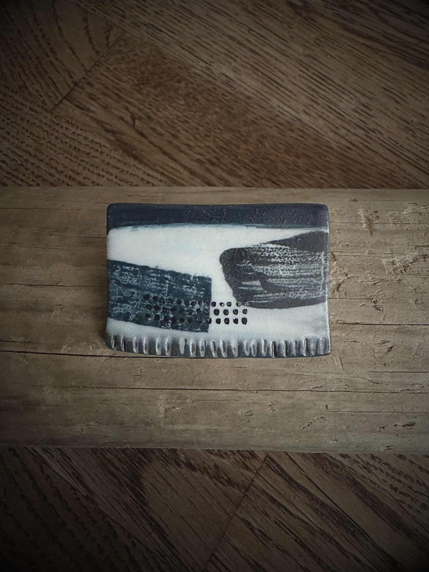 A unique, hand-painted and monoprinted porcelain brooch by Katy Mai, inspired by her landscape sketchbook drawings and the marks people... Read more
