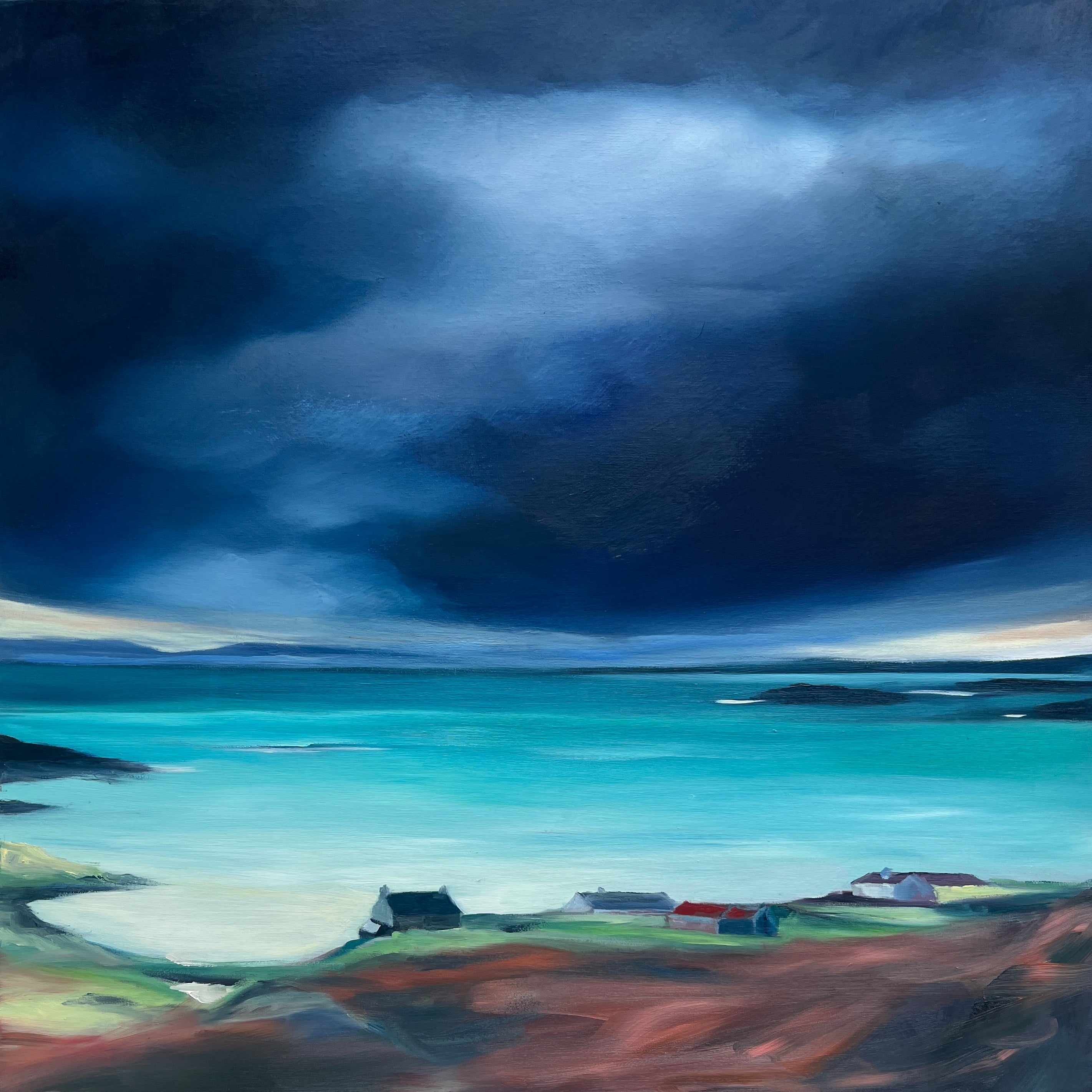 Inspired by the Scottish landscape, Sarah Anderson’s paintings explore changing light, weather, and atmosphere. Working in oils, she creates richly coloured works that invite the viewer into a powerful sense of place.