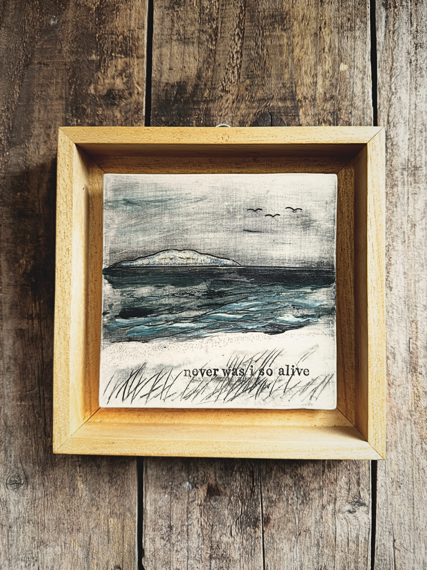 This hand-crafted ceramic artwork carries poetry lines stamped and drawn into stoneware clay, the words flowing across the surface to... Read more